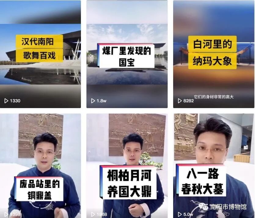 为展现南阳市博物馆陈列展览艺术,及馆藏文物重器的风采,疫情期间,市博推出微信博物馆、线上博物馆,受到广大游客的欢迎和好评。其中,抖音号、快手号视频阅读量高达二十余万,微信公众平台涨粉五千有余,新闻刊发、转发、转载阅读量高达十万之多,较好地传播、弘扬了南阳优秀厚重的历史文化。