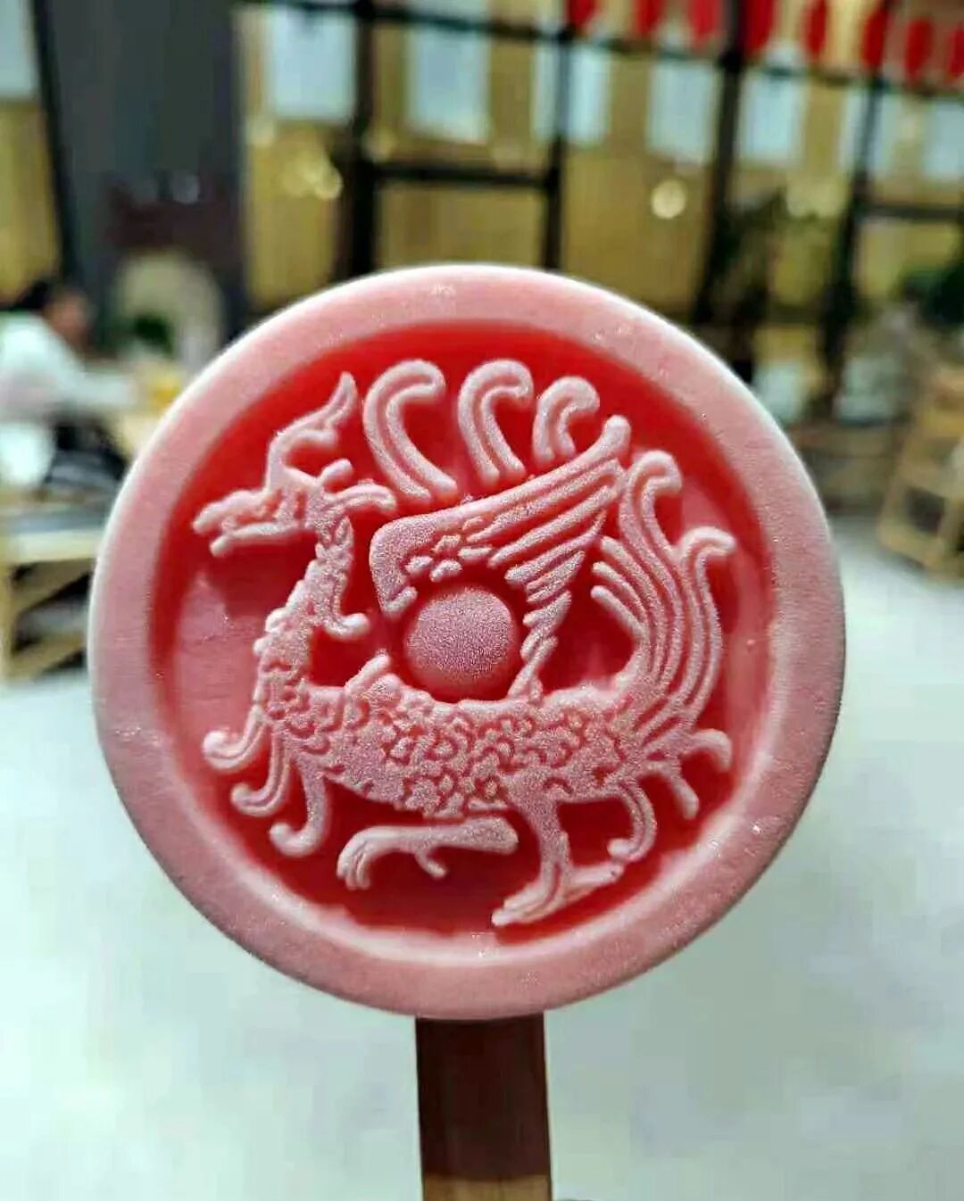 市博文创雪糕是以馆藏文物汉代瓦当,及市博馆标等为元素,配以不同的颜色,造型别致新颖,口感纯正爽心,备受游客青睐和喜爱。